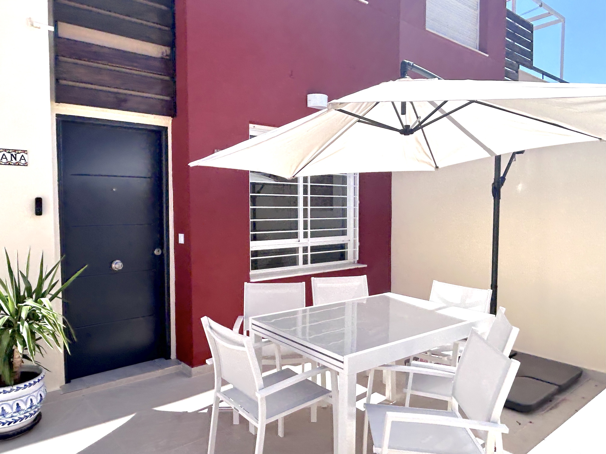 This newly refurbished quad house is an excellent addition to our portfolio and has 3 bedrooms, sleeping up to 7 people and two bathrooms, separate open plan kitchen and lovely terraces for all the sun worshippers.